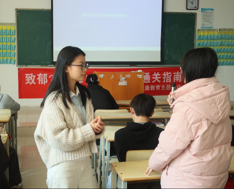 在宣讲过程中,主讲人通过深入浅出的讲解向参与者介绍了抑郁症的成因、表现以及治疗方法。主讲人强调,抑郁症并非简单的“情绪低落”,而是一种需要科学干预的心理疾病,及早发现和治疗至关重要。在宣讲过程中还设置了互动环节,让参与者有机会提出问题、分享经验,进一步促进了同学们对抑郁症的了解和讨论。许多学生表示,通过此次活动,他们对抑郁症有了更清晰的认识,也学会了如何更好地管理自己的情绪。