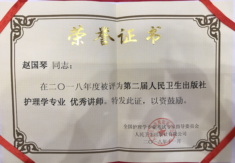 我院护理系赵国琴继续受聘人卫社护理学专业讲师团并获评2018年度优秀讲师