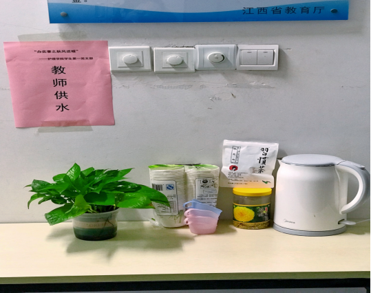 得知此情况后,永利集团学生第一党支部结合党史学习教育宗旨,深入落实“我为群众办实事”实践举措,在2号教学楼210办公室整理出一张茶水台,并准备好热水壶、纸杯、茶叶,摆放好座椅,为每日上课的老师送上“秋冬的第一杯热茶”,让老师们在日渐寒冷的日子里,感受到丝丝的温暖。