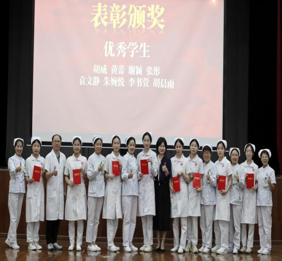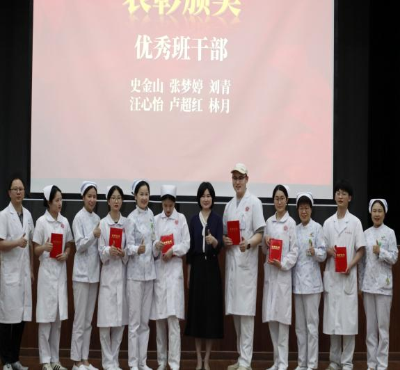 随后,对优秀学生干部、优秀学生进行了表彰。优秀学生干部获得者史金山作为学生代表在发言中深情回顾了求学时光的点点滴滴,向悉心栽培的师长和同窗挚友表达了诚挚谢意,并郑重承诺将秉承“仁心仁术”的职业信念,把所学知识转化为优质的护理服务,用实际行动践行南丁格尔精神。