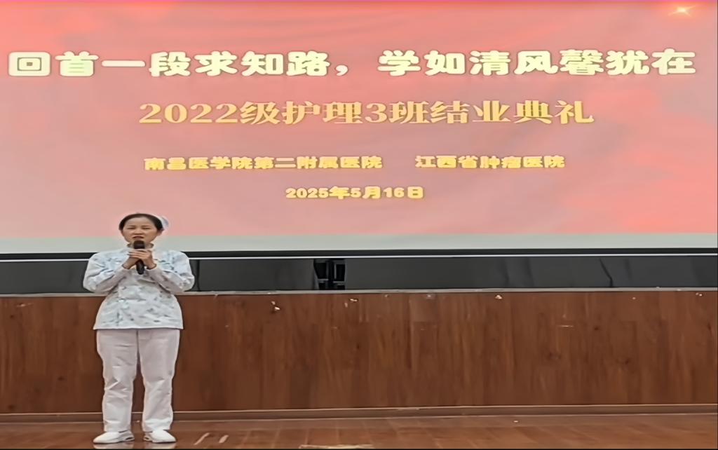 在庄重的结业典礼上,护理部洪金花主任首先向全体毕业生致以最诚挚的祝贺。她深情寄语道:“今天你们以优异的成绩为分段式学习画上圆满句点,明天将开启充满挑战与机遇的实习征程。希望你们始终以护理梦想为明灯,永葆学如清风馨犹在的初心,在护理事业的广阔天地中尽情驰骋”。言语间,既有师长对学子成长的欣慰,又饱含对未来的殷切期盼。